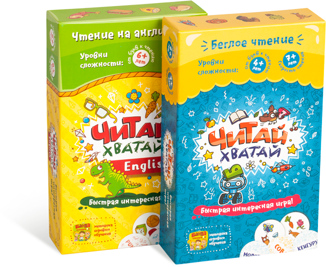 «Читай-Хватай» — дети быстро и с удовольствием научатся складывать из букв слова: кто быстрее читает — тот больше собирает. В игре дети читают с радостью и азартом! Прогресс в чтении уже после нескольких игр.